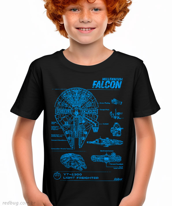Para pequenos jedis e rebeldes de coração: a camiseta infantil Millennium Falcon da RedBug une conforto e imaginação geek. Feita em algodão de qualidade, perfeita para aventuras no espaço da infância.