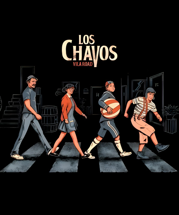 Vila Road: A Vila do Chaves encontra a lendária capa do álbum Abbey Road em uma paródia genial! Com Seu Madruga, Kiko e Chiquinha atravessando a faixa de pedestres. Perfeita para fãs de Chaves e amantes de música. Vista a nostalgia do seriado.
