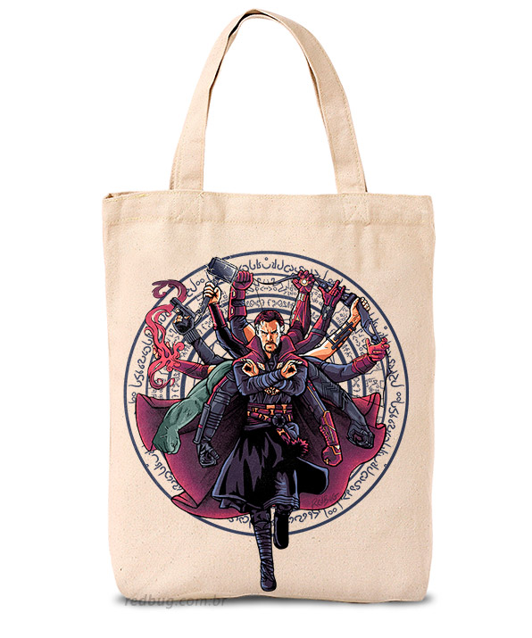Leve todo o poder dos Vingadores na sua bolsa. A Ecobag Vai Uma Mãozinha é resistente e ecológica, estampando o Doutor Estranho e seus múltiplos braços armados. O acessório perfeito para carregar suas HQs e itens do dia a dia.