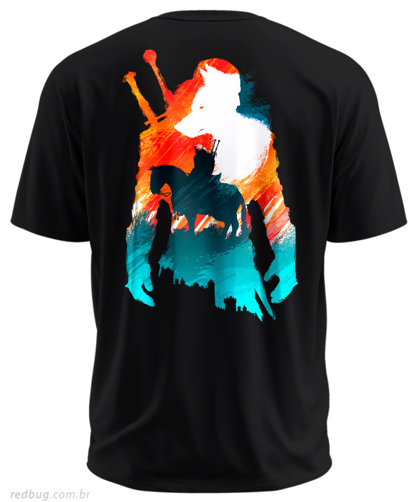 Inspirada no lendário bruxo Geralt de Rivia, esta camiseta com estampa nas costas combina o estilo geek e a elegância sombria do universo The Witcher. Uma peça para quem carrega o símbolo do Lobo Branco com orgulho.