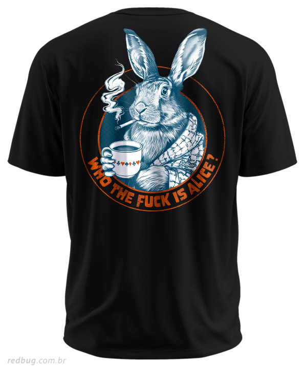 A estampa WTF Alice da RedBug traz o Coelho fumante e filósofo nas costas, questionando a lenda do País das Maravilhas, uma paródia rock 'n roll. Para quem adora o estilo estampa grande nas costas, esta camiseta de modelagem masculina é perfeita! Na frente, o escudo RedBug confirma a qualidade e a originalidade da sua escolha. Uma peça essencial para o geek que valoriza design impecável.