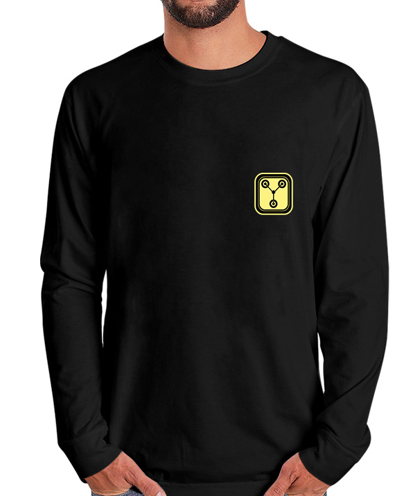 A versão manga longa da Capacitor de Fluxo une conforto e referência geek na medida certa. Com arte pocket minimalista inspirada em De Volta para o Futuro, é feita em algodão penteado e perfeita para fãs que preferem estilo discreto, criativo e atemporal.