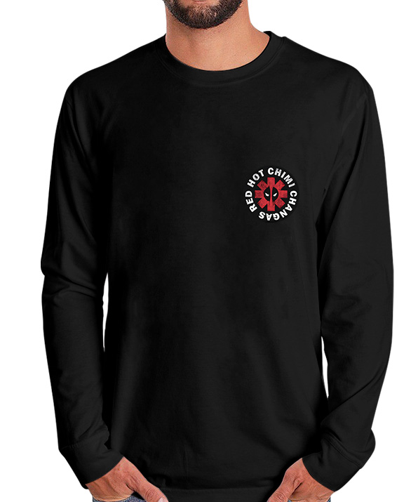 A manga longa Hot Chimichangas entrega humor e rock em uma arte pocket minimalista. Feita em algodão penteado, é perfeita para quem curte Deadpool, paródias criativas e looks discretos, mas cheios de personalidade.
