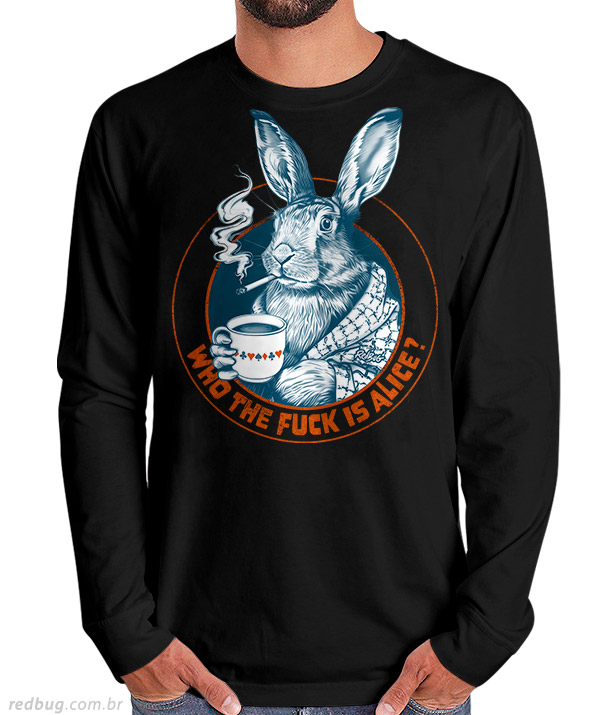Manga Longa WTF Alice: conforto e atitude geek! Vista a paródia do Coelho fumante em uma camiseta 100% algodão penteado de altíssima qualidade. O rock anos 70 e o humor pop te acompanham no frio. Seja RedBug!